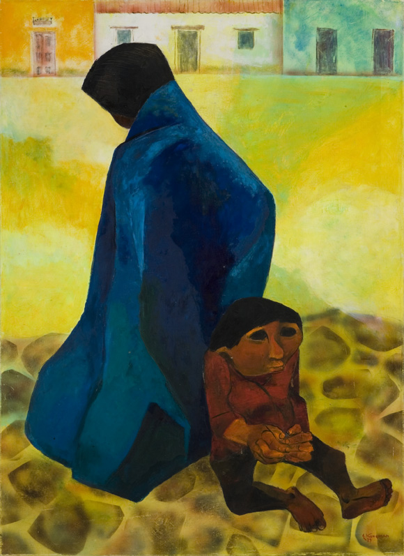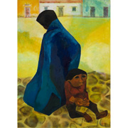 Painter born in Loja, Republic of Ecuador. Kingman first studied under Victor Mideros at the Escuela de Bellas Artes, in Quito. Further studies took him to Venezuela, Peru, Bolivia and finally to San Francisco Art Institute, California (1945-1946). Americans first became acquainted with Kingman's art in 1939, when he assisted Camilo Egas with the paintings and decorations for the Ecuadorian Pavilion at the New York World's Fair. For a period of twenty years, Eduardo Kingman held the post of principal professor at Quito's, Escuela de Belles Artes as well as Director of the Museo de Arte Colonial de Quito. In 1940, Kingman founded the Caspicara Gallery in Quito. At this time and later his original prints and paintings were exhibited internationally in such cities as Paris, Washington, San Francisco, Mexico City, Caracas and Bogotá. Near the end of his career, Kingman was honoured with a one man exhibition of his art at the United Nations, New York. A unifying theme of Kingman's paintings, lithographies and woodcuts is the plight of Ecuador's indigenous peoples. Poverty and hardship was often brilliantly delineated in the expressiveness of his subject's hands and faces. This element is clearly seen in this great, original lithograph. Kingman was also active as a writer and social activist. His open defense of and sympathy for his country's downtrodden peoples was a vital and inseparable force in his art.