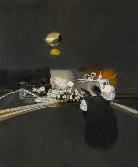 Born in Barcelona, Spain, Alejandro Obregon moved to Barranquilla, Colombia, as a child, He studied at the Boston School of fine Arts in 1939 then returned to Barcelona as Vice Consul for Colomb ia. When he returned to Bogotá in 1944, he taught at the School of Fine arts and was the director in 1948. He moved to Barranquilla in 1956 with frequent trips back to France, where he lived from 1949 to 1954. In the early 1970s he moved to Cartagena, Colombia. His paintings reflect an abstract in formalist style and has focused on Latin american subjects sucj as volcanos, condors, tropical flora and sea life.