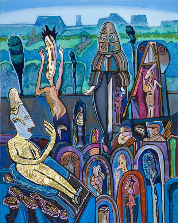 Was born in Valparaíso, Chile. He was forced to leave his country for political reasons – suspending his studies at the Santiago’s Escuela de Bellas Artes, he crossed Latin America and arrived to Paris in 1977, where we was welcome by leading artists such as Lam, Cárdenas and Matta. In 1982 he participated in the latin-american art exhibition which was held at the Grand Palais in Paris, which was historical for its dimension and wherethe group Magie Image composed by Cogollo, Aresti, Kaminer, Zarate, Cuevas and Murua was officially constituted. Mario Murua’s colorful images are inspired by the artifacts of his native Chile, particularly the pre-Columbian weavings and pottery, updated with stylistic references to contemporary life. These paintings, along with the sculpture and works on paper, came to the gallery directly from the artist’s one-person exhibition at the Boca Raton (Florida) Museum of Art. Mario Murua terms his visual language “canimagísmo,” coined from his concept of the artist’s cannibalistic absorption of images from both nature and people. When he was forced to flee Chile, his travels through South America included stays with indigenous groups, whose influence can be found in his work.