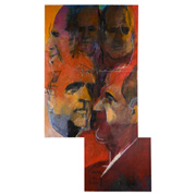 Born in Lisbon. Attended António Arroio School (1934-41), and the Schools of Fine Arts of Lisbon and Oporto in 1942 and 1945. Having moved to Paris in 1963, where he has lived even since. From 1947 to the present days he held several solo exhibitions in galleries in Oporto, Lisbon and Paris. The first retrospective of his work was shown at the Calouste Gulbenkian Foundation, after at the Soares dos Reis Museum, in Oporto and 1979, at the Maison de la Culture de Wollüwe Saint Pierre (Brussels). In 1979, he painted the series Os Tigres, based on illustrations for Rose et Bleu by Jorge Luis Borges. Other cycles of his work are Dom Quixote, Ulisses, and recently, the story of the 3 little pigs, and Frida Khalo. Several exhibitions followed in exhibitions at Glemeninge Gal., in Glemmingebro (1980), Paris (Gellechasse Gal. 1981 e 1984 e Lisbon. He was active illustrator and scenographer as well. Since 1953 he has represented Portugal at the Biennales of S. Paulo (1953, 1975 and 1984) and Tokyo (1957). He realized the tiles for the Subway Station “Alto dos Moínhos”, in Lisbon. He was awarded the Calouste Gulbenkian Foundation’s Prize for Engraving (1957) and First Prize for Painting (1961). He has published Discours sur la cécité des peintres e Catch-thèmes e variations (1984) In 2002 he had an anthological exhibition at the Aveiro Cultural Centre.