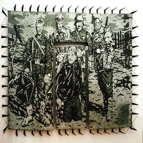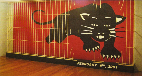 ( Biography )Rigo 23 (also known as Rigo , for example, Rigo 95), born (1966) Ricardo Gouveia, is a Portuguese muralist, painter, and political artist residing in San Francisco, California. He is known particularly in the San Francisco community for having painted a number of "one way" sign murals, such as the "One Tree" mural on the US-101 onramp at 10th and Bryant Streets, or the "Sky/Ground" mural at 3rd and Mission Streets. He is one of the founding members of Clarion Alley Mural Project collective and is still an active member as of 2006. He has also designed several installations as part of the 2006 Liverpool Biennnial. He is considered by some art critics and curators to be part of the first generation of the San Francisco Mission School art movement. Rigo was born and raised on the Portuguese island of Madeira. He later established himself as an artist in San Francisco, earning a BFA from San Francisco Art Institute in 1991 and an MFA from Stanford University in 1997. From 1984-2002, Rigo used the last two digits of the current year as part of his name, finally settling upon "23" in 2003.