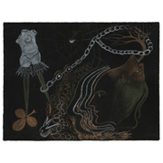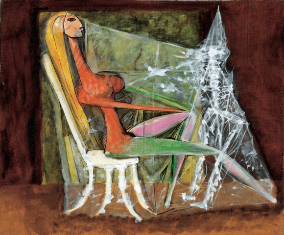 Óleo sobre madeira e moldura em madeira pintada pelo artista.;